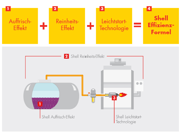Premium-Heizöl mit Shell Effizienz-Formel, für Heizungsanlagen jeden Alters geeignet.